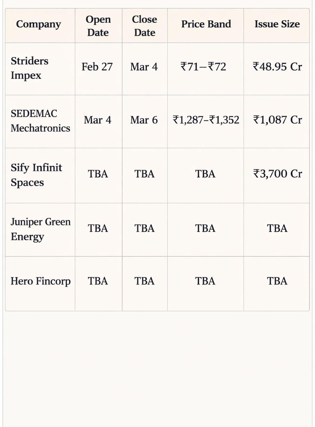 UPCOMING IPOs